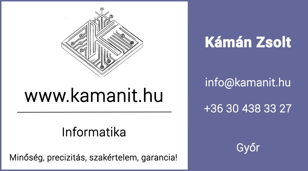 Kámán Zsolt vagyok, informatika szakos mérnöktanár, valamint mérnökinformatikus. Nemcsak munkám, de szenvedélyem is az informatika. Csaknem 20 éves szakmai tapasztalattal rendelkezem, ez idő alatt több területen is kipróbáltam magam, keresve az új kihívásokat. Nagy örömömre szolgál, hogy vállalkozóként most már az Ön segítségére is lehetek, keressen bizalommal, számíthat rám!